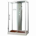Закрытая кабина • двери раздвижные • гидромассаж • баня • тропический душ • электронное управление • вентилятор • 90x120x220 см