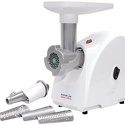 Номинальная мощность: 230 Вт • Производительность: 1.7 кг/мин • Насадки-решетки: Есть, 2 штуки • Прочие насадки: для формовки теста • Лоток для подачи продуктов: есть, пластик • Цвет корпуса: белый • Материал корпуса: пластик • Максимальная мощность: 1500 Вт