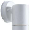 Светильник на штанге стиля техно для улицы имеет размеры 80x120x90 мм. Арматура светильника окрашена в белый цвет. Лампы в комплекте - отсутствуют. В светильнике применяются светодиодная LED-лампа. Цвет плафонов - белый, с матовой поверхностью. Материал плафонов - металл. Класс электробезопасности - I, степень пылевлагозащиты (IP) - 44. Максимальная мощность лампы (Вт) - 7. Светильник размещается на стене.