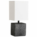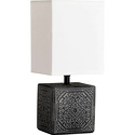Настольная лампа декоративная стиля модерн для гостиной, кабинета или спальни имеет размеры 130x110x290 мм. Арматура светильника окрашена в черный античный цвет. Лампы в комплекте - отсутствуют. В светильнике применяются лампы накаливания или светодиодная LED-лампа. Цвет плафонов - черный, с матовой поверхностью. Материал плафонов - текстиль. Класс электробезопасности - II, степень пылевлагозащиты (IP) - 20. Максимальная мощность лампы (Вт) - 40. Светильник размещается на столе.