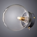 Бра стиля лофт для гостиной, кабинета или спальни имеет размеры 150x150x180 мм. Арматура светильника окрашена в черный цвет. Лампы в комплекте - отсутствуют. В светильнике применяются галогеновая лампа или светодиодная LED-лампа. Цвет плафонов - неокрашенный, с прозрачной поверхностью. Материал плафонов - стекло. Класс электробезопасности - I, степень пылевлагозащиты (IP) - 20. Максимальная мощность лампы (Вт) - 40. Светильник размещается на стене.