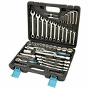 Набор: 77 шт • Ключи: комбинированные, торцевые, шестигранные • Головки: 6-ти гранные головки, свечные • Ключей-трещоток: 2 шт • Хранение: пластиковый кейс