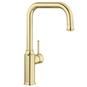 Назначение: кухонный • Конструкция: однорычажный • Монтаж: горизонтальный • Клапан: керамический • Материал: латунь, покрытие - латунь • Подводка: гибкая • Монтажные отверстия: 1 отверстие • Форма излива: традиционная • Душевая лейка в комплекте: нет • Аэратор: есть