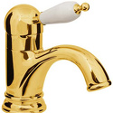 Назначение: для умывальника • Конструкция: однорычажный • Монтаж: горизонтальный • Материал: покрытие - золото • Монтажные отверстия: 1 отверстие • Форма излива: традиционная • Душевая лейка в комплекте: нет • Донный клапан в комплекте: есть