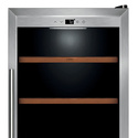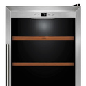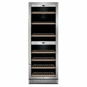 Тип: двухкамерный винный шкаф • Расположение: отдельностоящий • Количество компрессоров: 1 • Цвет: нерж.сталь • Размеры (ШxВxГ): 595x1590x685 мм • Количество дверей: однодверный • Винный шкаф: 126 бут. • Управление: цифровой дисплей, электронное • Освещение в холодильной камере: есть • Материал полок: дерево