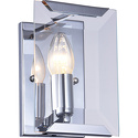 Бра стиля модерн для гостиной, кабинета или спальни имеет размеры 110х200х110 мм. Арматура светильника окрашена в хромовый цвет. Лампы в комплекте - отсутствуют. В светильнике применяются лампы накаливания или светодиодная LED-лампа. Цвет плафонов - неокрашенный, с прозрачной поверхностью. Материал плафонов - хрусталь. Класс электробезопасности - I, степень пылевлагозащиты (IP) - 20. Максимальная мощность лампы (Вт) - 60. Светильник размещается на стене.
