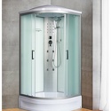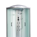 Закрытая кабина, полностенная, двери раздвижные, материал поддона: акрил, материал стенок: стекло, тропический душ, вертикальный гидромассаж, габариты (ШхВхД): 90x210x90 см