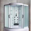 Закрытая кабина, полностенная, комбинированная с ванной, двери раздвижные, материал поддона: акрил, материал стенок: стекло, тропический душ, вертикальный гидромассаж, габариты (ШхВхД): 120x220x120 см
