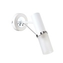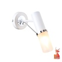 Бра стиля лофт для гостиной, кабинета или спальни имеет размеры 100x215x270 мм. Арматура светильника окрашена в белый и хромовый цвет. Лампы в комплекте - отсутствуют. В светильнике применяются лампы накаливания или светодиодная LED-лампа. Цвет плафонов - белый, с матовой поверхностью. Материал плафонов - стекло. Класс электробезопасности - I, степень пылевлагозащиты (IP) - 20. Максимальная мощность лампы (Вт) - 40. Светильник размещается на стене.
