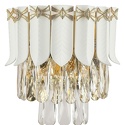 Накладной светильник стиля флора для гостиной, кабинета, коридора, прихожей или спальни имеет размеры 165x270x265 мм. Арматура светильника окрашена в золотой цвет. Лампы в комплекте - отсутствуют. В светильнике применяются лампы накаливания или светодиодная LED-лампа. Цвет плафонов - белый, неокрашенный, с глянцевой, прозрачной, рельефной поверхностью. Материал плафонов - керамика, стекло. Класс электробезопасности - I, степень пылевлагозащиты (IP) - 20. Максимальная мощность лампы (Вт) - 40.
