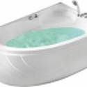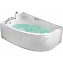 Материал: акрил • Расположение: отдельно стоящая, угловая конструкция • Форма: нестандартная • Количество мест: одноместная • Гидромассаж: есть, 5 форсунок • Подсветка: есть • Комфорт: подголовник • Смеситель в комплекте: есть • Размеры (ДxШxВ): 150x100x54 см