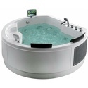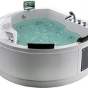 Материал: акрил • Расположение: отдельно стоящая • Форма: нестандартная • Количество мест: двухместная • Гидромассаж: есть, 11 форсунок • Аэромассаж: есть • Озонирование: есть • Подсветка: есть • Комфорт: подголовник • Смеситель в комплекте: есть • Размеры (ДxШxВ): 185x183x74 см