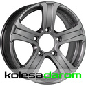 Тип: литой • Материал: алюминиевый сплав • Ширина: 6" • Диаметр обода: 16" • Количество крепежных отверстий: 5 • Диаметр расположения отверстий (PCD): 139.7 мм • Вылет (ET): 40 мм • Диаметр центрального отверстия: 98 мм • Цвет: серебристый, чёрный, серый