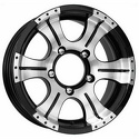 Тип: литой • Материал: алюминиевый сплав • Ширина: 8" • Диаметр обода: 16" • Количество крепежных отверстий: 5 • Диаметр расположения отверстий (PCD): 139.7 мм • Вылет (ET): -15 мм • Диаметр центрального отверстия: 110.1 мм • Цвет: серебристый, чёрный