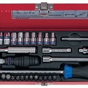 Комплектация- Трещотка 1/4", 140 мм, 24 зубца, флажковая, фиксатор KING TONY 2779-55G;- Отвертка вороток под вставки (биты) 1/4", 300 мм KING TONY 213312DF;- Вороток 1/4", 115 мм, скользящий KING TONY 2571-45;- Вороток 1/4", 125 мм, с шарниром KING TONY 2452-05F;- Держатель вставок (бит) 1/4">1/4" KING TONY 2141;- Кардан 1/4" KING TONY 2792;- Удлинитель 1/4", 50 мм KING TONY 2221-02;- Удлинитель 1/4", 150 мм KING TONY 2221-06;- Торцевые головки KING TONY серии 2335M, размеры: 4, 4.5, 5, 5.5, 6, 7, 8, 9, 10, 11, 12, 13 мм;- Вставки (биты) торцевые 1/4", HEX, KING TONY серии 1025H: 3, 4, 5, 6, 7, 8 мм;- Вставки (биты) торцевые 1/4", Phillips, KING TONY серии 1025P: №0, №1, №2, №3;- Вставки (биты) торцевые 1/4", Slotted, KING TONY серии 1025S: 4, 5.5, 7 мм;- Вставки (биты) торцевые 1/4", TORX, KING TONY серии 1025T: T10, T15, T20, T25, T30, T40.