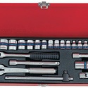 Комплектация- Головки торцевые стандартные 6-гранные, серия 3335M 6, 7, 8, 9, 10, 11, 12, 13, 14, 17, 19, 21, 23 мм- Головка свечная 6-гранная, серия 3635M 21 мм, длина 70 мм, резиновый фиксатор- Трещотка серии 3779-08F длина 200 мм, 32 зубца, флажковый механизм переключения реверса, насечка на рукоятке- Вороток с шарниром, серии 3452-08G длина 200 мм, рукоятка из термопластичной резины (TPR)- Вороток скользящий (ползунок), серии 3571-08 длина 200 мм- Удлинители серии 3221R длина 75 и 150 мм- Кардан серии 3792R- Кейс