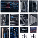 КомплектацияМодуль 1Набор торцевых головок 1/2" с принадлежностями 9-4333MR03 33Набор торцевых головок 3/8" с принадлежностями 9-3523MR 23Модуль 2Набор ударных головок 1/2" и торцевых головок 1/4" с принадлежностями 9-7540MR 40Набор торцевых насадок, шестигранники Г-образные и разрезные ключи 9-90131MR 31Модуль 3Набор комбинированных ключей 9-1216MR03 16Набор накидных ключей 9-1711MR 11Модуль 4Набор отверток, съемник клипс и гибкий магнит 9-31919MR 19Модуль 5Набор съемников стопорных колец, пассатижей и бокорезов 9-40207GP 7Набор переставные клещи, разводной ключ и молоток 9-90103PP02 3Модуль 6Набор отвертка ударная 5/16" с принадлежностями 9-4128FR 10Набор выколоток, бородков, кернеров 1010PR 10Съемник подшипников 3-х захватный 100 мм 7963-04 1Съемник подшипников 2-х захватный 100 мм 7962-04 1Технические характеристикиМатериалы – инструментальные стали Cr-V, Cr-Mo, SNCM+V (S2), конструкционная сталь, хром, пластики PP, вспененный PVC, PP+TPR (рукояти отверток, трещоток, шарнирно-губцевого инструмента), дерево (рукоять молотка), PVC (ложемент)Размеры упаковки – 575 × 540 × 420 ммВес – 31,7 кг