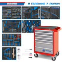 КомплектацияМодуль 1Набор торцевых головок 1/2" с принадлежностями, 37 предметов 9-4537MRVНабор торцевых головок 3/8" с принадлежностями, 44 предмета 9-3544MRVМодуль 2Набор торцевых головок 1/4" с принадлежностями, 65 предметов 9-2565MRVНабор торцевых насадок, бит и ударная отвертка, 43 предмета 9-4143FRVНабор рожковых ключей, 12 предметов 9-1112MRVМодуль 3Набор накидных ключей и TORX L-образных, 19 предметов 9-90119MRVНабор комбинированных ключей, 20 предметов 9-1220MRVМодуль 4Набор напильников, торцевых отверток, съемники клипс и металлическая щетка, 13 предметов 9-90413TQVМодуль 5Набор разрезных ключей и шестигранники Г-образные, 15 предметов 9-90135MRVНабор пассатижей и бокорезов, 4 предмета 9-40104GPVНабор пассатижи, переставные клещи и зажим, 3 предмета 9-40113GPVНабор съемников стопорных колец, 4 предмета 9-44214GPVМодуль 6Набор отверток, 24 предмета 9-31124MRVМодуль 7Набор шестигранников L-тип, 8 предметов 9-22108MRVНабор зубил, выколоток, кернеров с молотком, 8 предметов 9-90118PRVВспомогательный инструментСъемник подшипников 2-х захватный 100 мм 7962-04Съемник подшипников 3-х захватный 100 мм 7963-04Магнит на гибком стержне 5х565 мм 2121-18Отвертка крестовая Phillips №2, 300 мм 14210212Отвертка шлицевая Slotted 6,5 мм, 300 мм 14226512Тестер для проверки напряжения, 3-48 В 9DC23Тележка инструментальная7 выдвижных полок, цвет синий Количество предметов: 325Количество ложементов: 15Размеры тележки в сборе: 460 х 680 х 955 ммУпаковка: картонВес: 88,35 кг