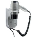 Тип: настенный • Мощность: 1400 Вт • Количество режимов: 2 • Основные насадки в комплекте: концентратор • Дополнительные функции: встроенная розетка, холодный воздух • Защита от перегрева: есть • Цвет: серебристый