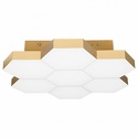 Накладной светильник стиля техно для гостиной, кабинета, прихожей или спальни имеет размеры 380x380x75 мм. Арматура светильника окрашена в золотой цвет. Лампы в комплекте - светодиодные [LED]. В светильнике применяются светодиодная LED-лампа. Цвет плафонов - белый, с матовой поверхностью. Материал плафонов - полимер. Класс электробезопасности - I, степень пылевлагозащиты (IP) - 40. Максимальная мощность лампы (Вт) - 5. Светильник размещается на потолоке.