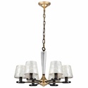 Подвесная люстра стиля классика для гостиной, кабинета или спальни имеет размеры 660x1240 мм. Арматура светильника окрашена в золотой и черный цвет. Лампы в комплекте - отсутствуют. В светильнике применяются лампы накаливания или светодиодная LED-лампа. Цвет плафонов - светло-серый, с матовой поверхностью. Материал плафонов - текстиль. Класс электробезопасности - I, степень пылевлагозащиты (IP) - 20. Максимальная мощность лампы (Вт) - 40. Светильник размещается на потолоке.