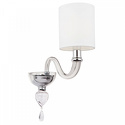 Бра стиля модерн для гостиной, кабинета или спальни имеет размеры 140x390x310 мм. Арматура светильника окрашена в хромовый цвет. Лампы в комплекте - отсутствуют. В светильнике применяются лампы накаливания или светодиодная LED-лампа. Цвет плафонов - белый, с матовой поверхностью. Материал плафонов - текстиль. Класс электробезопасности - I, степень пылевлагозащиты (IP) - 20. Максимальная мощность лампы (Вт) - 40. Светильник размещается на стене.