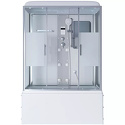 Закрытая кабина, полностенная, комбинированная с ванной, двери раздвижные, материал поддона: акрил, материал стенок: стекло, тропический душ, вертикальный гидромассаж, габариты (ШхВхД): 80x223x150 см