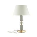 Настольная лампа декоративная стиля модерн для гостиной, кабинета или спальни имеет размеры 315x510 мм. Арматура светильника окрашена в золотой цвет. Лампы в комплекте - отсутствуют. В светильнике применяются лампы накаливания или светодиодная LED-лампа. Цвет плафонов - белый, с матовой поверхностью. Материал плафонов - текстиль. Класс электробезопасности - II, степень пылевлагозащиты (IP) - 20. Максимальная мощность лампы (Вт) - 60. Светильник размещается на столе.