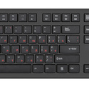 Клавиша "Обратная косая черта" (\) расположена слева от Backspace, при этом Backspace по размеру такая же как и все остальные клавиши. Клавиши Fx слишком маленькие. На пробеле нанесен логотип. Светодиоды режимов Num Lock, Caps Lock и Scroll Lock расположены в каких-то щелевых углублениях, поэтому вообще не видно как они светятся. Но больше всего поразило и это недопустимо даже для самой дешевой клавиатуры - она кривая. Когда лежит на столе и печатаешь, то она постоянно прыгает одним краем и дребезжит, потому что не касается стола всеми "ножками".
