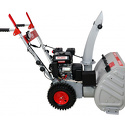 Снегоуборщик Ресанта СБ 4800Б предназначен для расчистки от выпавшего снега территории, например, небольшие дорожки или территорию возле загородного дома. Самоходный агрегат оборудован четырехтактным двигателем мощностью 7.0 л.с. Ширина обработки за один проход составляет 56 сантиметров. Рычаг регулировки скорости, рычаг, регулирующий направление и дальность выброса, вынесены на панель оператора. Металлический шнек может измельчать плотный или мокрый снег.