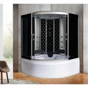 Закрытая кабина • комбинированная • угловая • двери раздвижные • гидромассаж • баня • тропический душ • электронное управление • вентилятор • 150x150x220 см