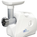Номинальная мощность: 300 Вт • Производительность: 0.58 кг/мин • Вес: 3.5 кг • Насадки-решетки: Есть • Насадки-терки: Есть • Насадки для шинковки: Есть • Прочие насадки: для приготовления кеббе, для приготовления колбас • Резиновые ножки: есть • Лоток для подачи продуктов: есть, пластик • Цвет корпуса: белый • Материал корпуса: пластик • Максимальная мощность: 800 Вт