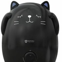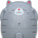 Купили за 1930 руб в райБТ. Пользуемся около месяца. С рождения сына у нас стоял обычный паровой, именно паровой - т.к. в свое время не было времени заморачиваться в отзывах - оставляет налет или нет, плюс был по соц.карте. И вот спустя 2 года нас его бульканье заманало и мы решили сменить его на ультразвуковой. Первый восторг, это конечно дизайн, сын его обожает просто, пар идет из ушек. Второй, что он достаточно тихий, особенно по сравнению с паровым. Сам постоянный шум как тихий ноутбук, время от времени побулькивает, но мы привыкли быстро и теперь можем спать со включенным увлажнителем, опять же по сравнению с паровым - это было невозможно! Мощность правда для нас оказалась маловата, НО у нас помимо основного отопления в комнате 13кв.м. всегда включен обогреватель зимой, после прокачки с 20% влажность при закрытой двери повышает до 40%. Паровой же за пару часов даже с приоткрытой дверью мог на 20% в легкую повысить, а с закрытой так и вообще до 60% наувлажнять) Но данная проблема нам теперь не актуальна, ибо он может работать теперь и ночью. Хватает до 8 часов бака. Луж нет, при замене ну да может прокапать чуть-чуть (капли, не пол стакана))) воды из-за переворотов, у нас просто платок рядом всегда. Заливать просто: снял декоративную верхнюю половину котика, поднял и перевернул бак, отвинтил крышку, залил в отверстие воды и в обратном порядке) Кому важно - декоративная часть никак не крепится. И да, голубая кнопка и правда яркая, но ничего не заклеиваем, просто на ночь кота поворачиваем к кровати попой и все, получается мягкий голубой свет как от светильника в розетке)