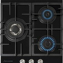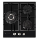 Поверхность: варочная панель • Тип поверхности: газовая • Рабочая поверхность: закаленное стекло • Число конфорок: 3 • Установка: независимая • Газовые конфорки: всего - 3 (1 конфорка "Двойная корона") • Газ-контроль конфорок: есть • Тип управления: механическое • Переключатели: поворотные • Электроподжиг: есть, автоматический • Размеры: 440x515x100 мм • Размер ниши для встраивания: 410x490 мм