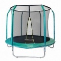 Тип - Бытовой для улицы, Количество пружин - 48, Количество ножек - 3, Максимальная нагрузка - 150, Материал мата - Полипропилен, Материал стоек/ножек - Оцинкованная сталь, Количество пользователей одновременно - 2, Диаметр батута - 244, Материал защитной сетки - Полиэтилен, Высота с защитной сеткой - 216, Количество стоек - 6, Материал обмотки стоек - ПВХ, Цвет стоек - Зеленый, Цвет мата - Черный, Вес - 35, Защитная сетка - Есть