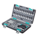 Комплектация- Ключ трещоточный 1/4.- Головки торцевые 1/4: 4, 4.5, 5, 5.5, 6, 7, 8, 9, 10, 11, 12, 13, 14.- Головки торцевые 1/4, удлиненные 6, 7, 8, 10.- Кардан 1/4.- Удлинители 1/4: 50 мм и 100 мм.- Отвертка-держатель 1/4.- Рем. комплект шестигранных ключей: 1.5 мм, 2.0 мм, 2.5 мм, 3.0 мм, 3.5 мм.- Головки торцевые 1/4 со вставкой: Т8, Т10, Т15, Т20, Т25, Т27, Т30, T40, PH1, PH2, PH3, PZ1, PZ2, PZ3, H3, H4, H5, H6, H7, H8, H10, SL4, SL5.5, SL6.5.- Головки торцевые 1/4": E4; E5; E6; E7; E8; E10.