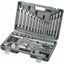 Комплектация- Ключ трещоточный 1/2.- Ключ трещоточный 1/4.- Головки торцевые 1/2: 10, 11, 12, 13, 14, 15, 17, 19, 22,24, 27, 30, 32 мм.- Головки торцевые 1/4: 4, 5, 6, 7, 8, 9, 10, 11, 12 мм.- Ключи комбинированные 6,7,8,9,10,11,12,13,14,17,19.- Ключи шарнирные 8х9, 10х11, 12х13, 14х15.- Кардан 1/2.- Кардан 1/4.- Удлинитель 1/2, соединение под ключ 120 мм и 250 мм.- Удлинитель 1/4, соединение под ключ 100 мм.- Отвертка-держатель 1/4.- Вороток Т-образный 1/4.- Угловые шестигранные ключи 2 мм, 2.5 мм, 3 мм, 4 мм, 5 мм, 6 мм, 8 мм, 10 мм.- Головки свечные 1/2 16 мм и 21 мм.- Переходник бит 1/4->1/4.- Биты 1/4" Т10, Т15, Т20, Т25, Т27, Т30, T40. ТТ10, ТТ15, ТТ20, ТТ25, ТТ27, ТТ30, ТT40. SL 4, SL 5.5, SL 7. Н2, Н3, Н4, Н5, Н6, Н7, Н8, Н10. PZ 0, PZ 1, PZ 2, PZ 3. РН0, РН1, РН2, PH3.