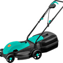 колёсная газонокосилка • электрический двигатель 1800 Вт (2.44 л.с.) • ширина скашивания: 38 см • жесткий травосборник 35 л