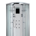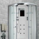 Закрытая кабина, полностенная, двери раздвижные, материал поддона: акрил, материал стенок: стекло, тропический душ, вертикальный гидромассаж, габариты (ШхВхД): 90x225x90 см