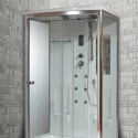 Закрытая кабина, полностенная, двери раздвижные, материал поддона: акрил, материал стенок: стекло, тропический душ, вертикальный гидромассаж, габариты (ШхВхД): 90x220x120 см