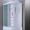 Закрытая кабина, полностенная, правосторонняя, двери раздвижные, материал поддона: акрил, материал стенок: стекло, тропический душ, вертикальный гидромассаж, габариты (ШхВхД): 80x215x120 см