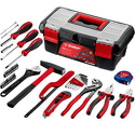 КомплектацияМолоток столярный - 1 шт.Рулетка (3 м) - 1 шт.Отвертки (PH 2, SL 6) - 2 шт.Отвертка-битодержатель - 1 шт.Адаптер для бит - 1 шт.Биты (25 мм, PH0, 1, 2, 3; PZ1, 2, 3; SL3, 5.5, 7; HEX 2, 3, 4, 5, 6; TX10, 15, 20, 25, 30) - 20 шт.Отвертки для точных работ (PH 00, SL 1.5) - 2 шт.Имбусовые ключи (1.5, 2, 2.5, 3, 4, 5, 6, 8) - 8 шт.Клещи переставные (250 мм) - 1 шт.Ключ разводной (25 мм) - 1 шт.Нож (18 мм) - 1 шт.Плоскогубцы (160 мм) - 1 шт.Бокорезы (140 мм) - 1 шт.Бокорезы (160 мм) - 1 шт.Мини-ножовка по металлу - 1 шт.