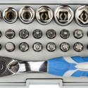 Набор: 31 шт • Головки: 6-ти гранные головки • Ключей-трещоток: 1 шт • Хранение: пластиковый кейс